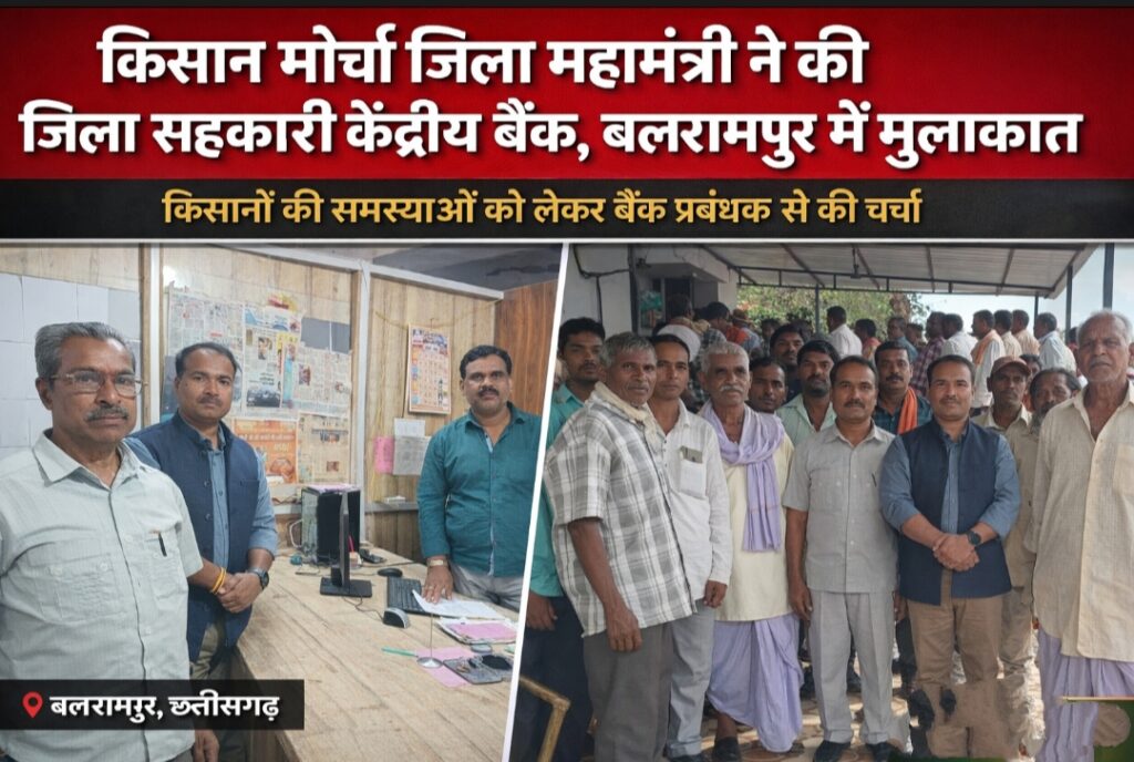 इस दौरान उन्होंने शाखा प्रबंधक कमल नारायण पाण्डेय से मुलाकात कर किसानों की ज्वलंत समस्याओं पर विस्तृत चर्चा की और उनके निराकरण हेतु ठोस सुझाव साझा किए।