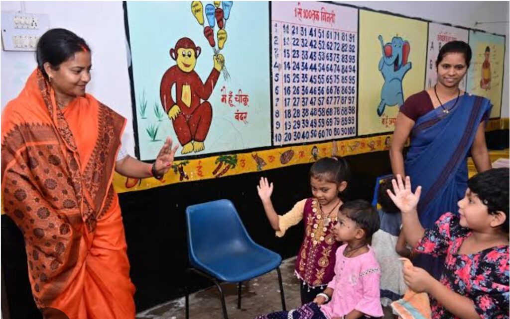 महिला बाल विकास मंत्री श्रीमती लक्ष्मी राजवाड़े ने किया आंगनबाड़ी और प्राथमिक शाला का औचक निरीक्षण