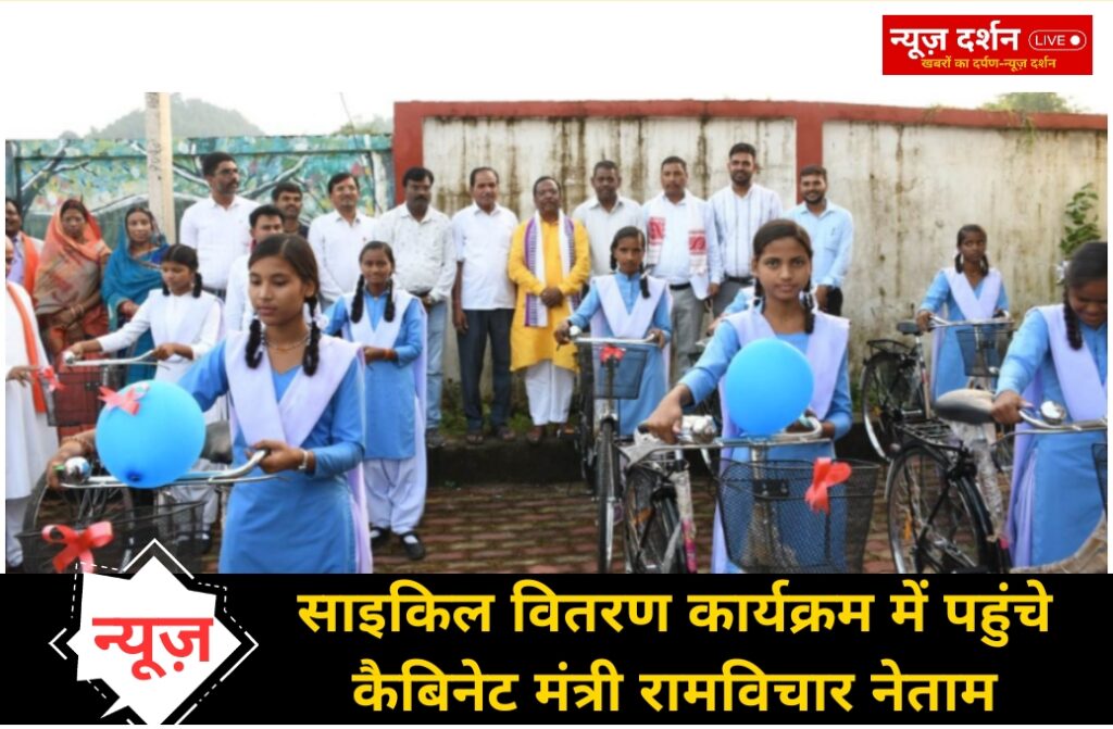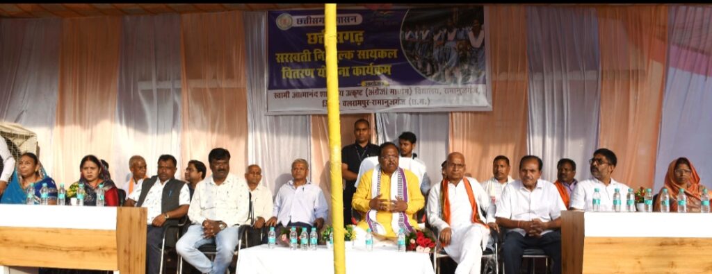 न्यूज़ दर्शन@ बलरामपुर। आदिम जाति एवं अनुसूचित जाति विकास, पिछड़ा वर्ग एवं अल्पसंख्यक विकास एवं कृषि मंत्री रामविचार नेताम ने बलरामपुर प्रवास के दौरान विकासखण्ड रामानुजगंज अंतर्गत स्वामी आत्मानंद अंग्रेजी माध्यम विद्यालय रामानुजगंज में साइकिल वितरण कार्यक्रम में शिरकत हुए। उन्होंने मां सरस्वती एवं छत्तीसगढ़ महतारी के छाया चित्र पर माल्यार्पण एवं दीप प्रज्वलन कर कार्यक्रम का शुभारंभ किया। इस अवसर पर वरिष्ट जनप्रतिनिधि सुभाष केशरी, जनपद उपाध्यक्ष बलरामपुर भानूप्रकाश दीक्षित, मंडल अध्यक्ष रामानुजगंज शर्मिला गुप्ता, पार्षद राजनाथ विश्वकर्मा सहित अन्य जनप्रतिनिधिगण, अनुविभागीय अधिकारी रामानुजगंज श्री देवेन्द्र प्रधान, जिला शिक्षा अधिकारी डी.एन.मिश्रा सहित बड़ी संख्या में स्कूली बच्चे मौजूद रहे।