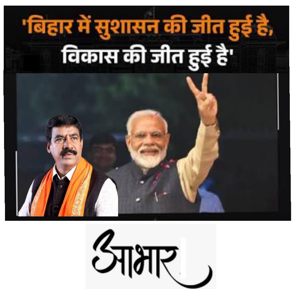 बिहार विधानसभा चुनाव में ऐतिहासिक जीत पर प्रदेश अध्यक्ष आलोक ठाकुर ने प्रधानमंत्री जी का आभार जताया एवं प्रदेशवासियों को शुभकामनाएं दी