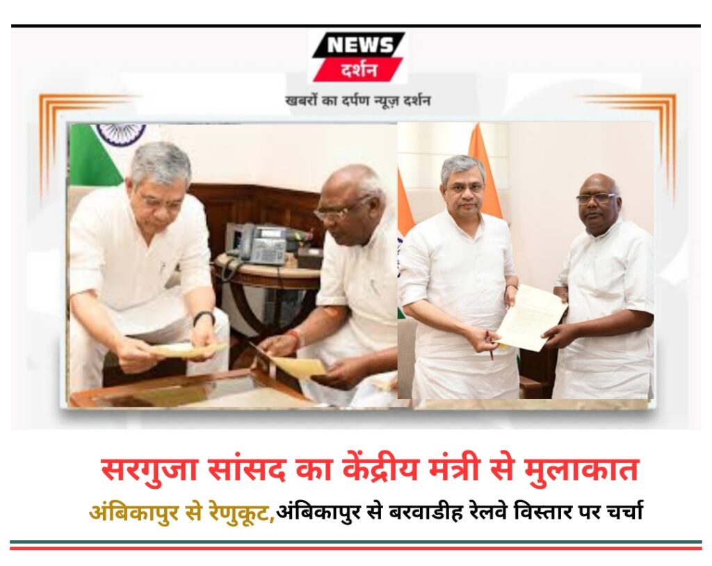 न्यूज़ दर्शन@अम्बिकापुर। सरगुजा संभाग को वृहत्तर रेलवे नेटवर्क से जोड़ने की मांग को लेकर सरगुजा सांसद श्री चिंतामणि महराज ने रेल मंत्री श्री अश्विनी वैष्णव को पत्र सौंपा है। इस पत्र के माध्यम से सांसद श्री महराज ने अम्बिकापुर क्षेत्र की कई लंबित रेल संबंधी मांगों को शीघ्र स्वीकृत करने आग्रह किया है।