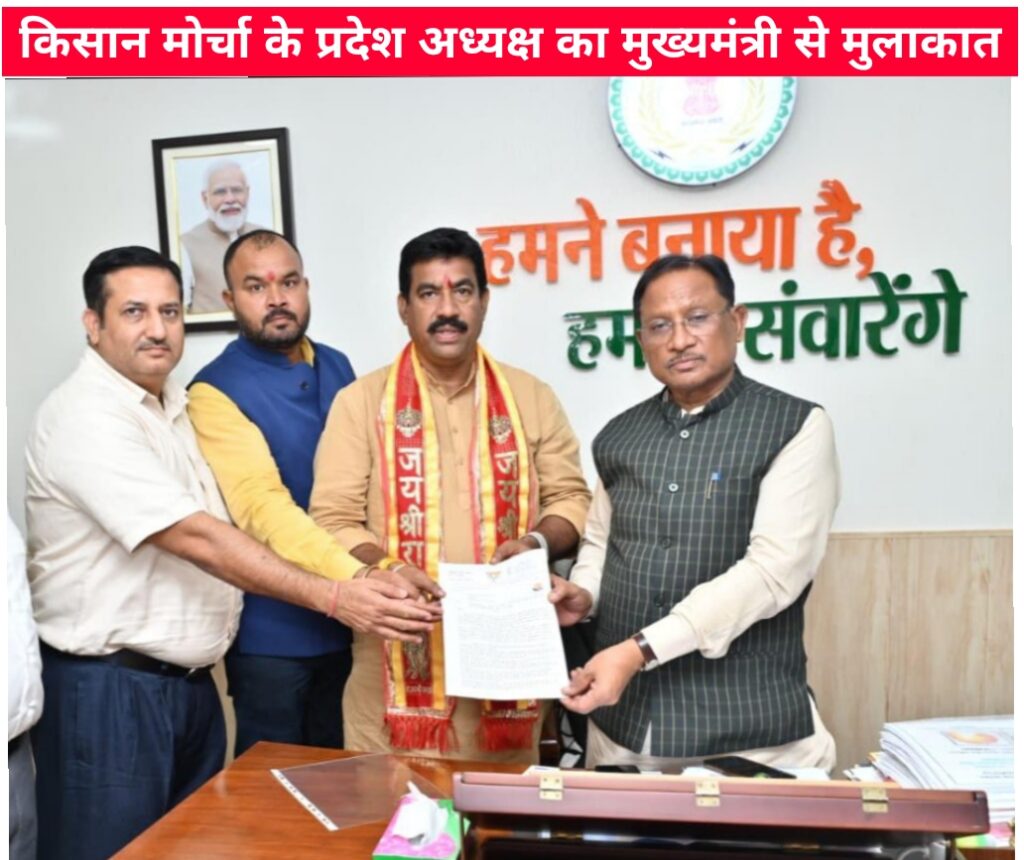 किसानों के एग्री-स्टेक पंजीयन की समय वृद्धि को लेकर मुख्यमंत्री जी से भाजपा किसान मोर्चा के प्रदेश अध्यक्ष सौजन्य मुलाकात