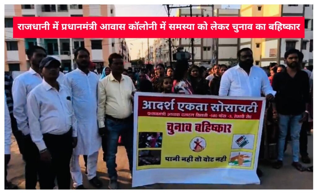 राजधानी रायपुर के पीएम आवास हितग्राहियों का फूटा गुस्सा,पोस्टर लगाकर किया चुनाव का बहिष्कार,हितग्राहियों ने सरकार पर लगाए गंभीर आरोप