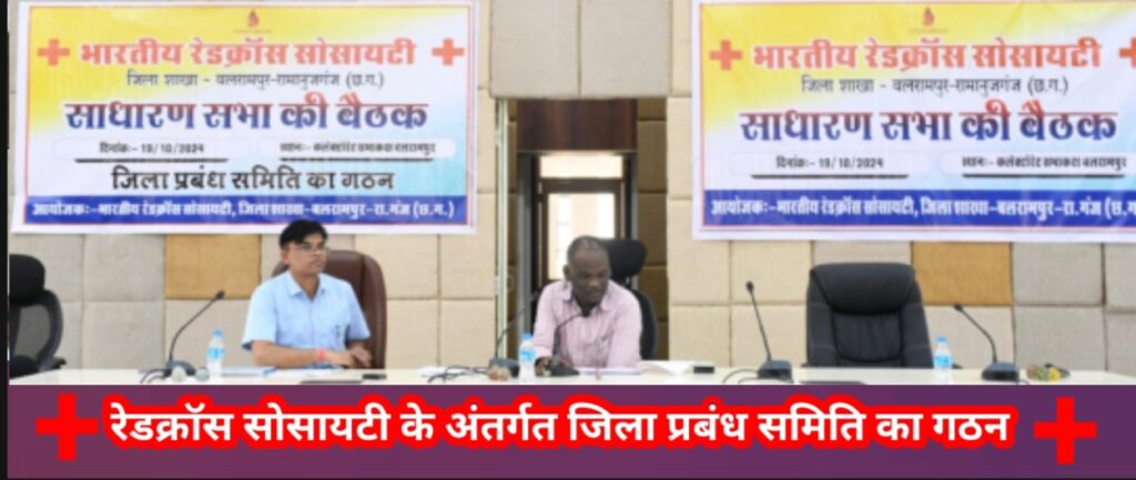भारतीय रेडक्रॉस सोसायटी जिला शाखा बलरामपुर के साधारण सभा की बैठक में भारत जनता पार्टी के जिला अध्यक्ष ओमप्रकाश जायसवाल सहित जनप्रतिनिधि एवं विभागीय अधिकारी कर्मचारी के मौजूदगी में जिला प्रबंधन समिति का गठन किया गया।